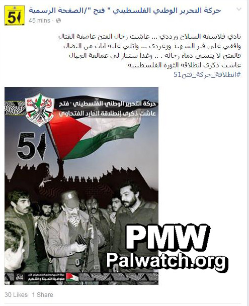 Fatah Facebook celebrates 51 years of terror: “Stand on the Martyr’s grave and ululate”