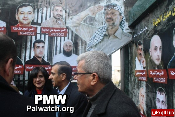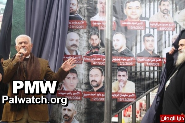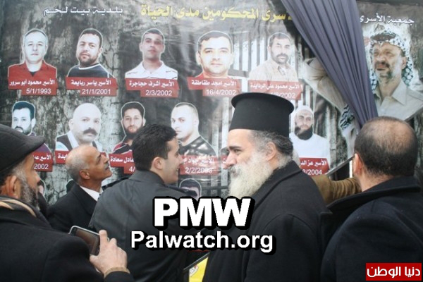 “Yesterday [Dec. 30, 2015] was the unveiling of the exhibit in Bethlehem in honor of the district’s 52 prisoners sentenced to life, sponsored and supervised by the Bethlehem municipality and the union of released prisoners. Present at the event were Fatah Central Committee member Abbas Zaki, Director of PLO Commission of Prisoners’ Affairs Issa Karake, Governor of Bethlehem district Jabrin Al-Bakri, Mayor of Bethlehem Vera Baboun, and [Greek-Orthodox] Archbishop [of Sebastia] Atallah Hanna… The speakers emphasized in their speeches that this exhibit is a salute of loyalty and commitment to the prisoners serving time in the occupation’s prisons.”