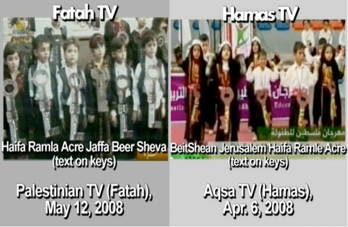Fatah and Hamas use identical symbols to teach children denial of Israel.
