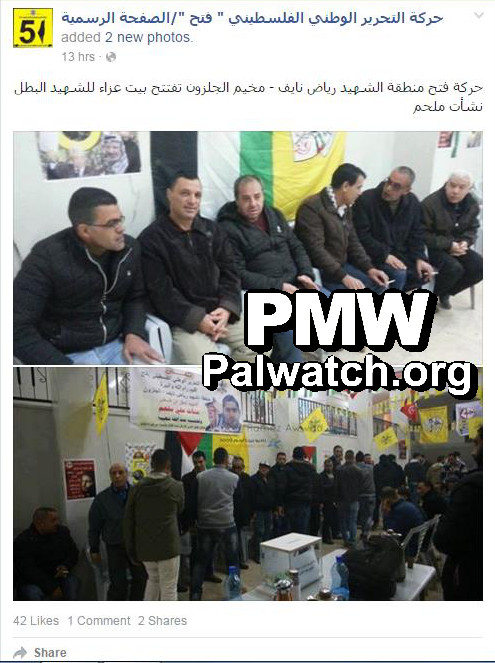 Fatah opens mourning tent for “heroic Martyr” terrorist who killed 3 in Tel Aviv