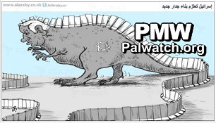 The cartoon depicts Israeli Prime Minister Benjamin Netanyahu as a dinosaur with the knobs of his vertebrae depicted as cement dividers, possibly referring to the new fence Israel is building between Israel and Jordan.