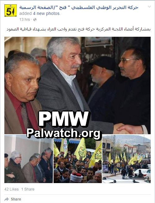 Official Fatah Facebook reports on a Fatah procession to console the families of three terrorists from Qabatiya who killed Israeli policewoman Hadar Cohen on Feb. 3, 2016 at the Damascus Gate in the Old City of Jerusalem. Fatah Commissioner for Diaspora Branches and Fatah Central Committee member Jamal Muhaisen and Fatah Commissioner for Mobilization and Organization and Fatah Central Committee member Mahmoud Al-Aloul participated in the procession.