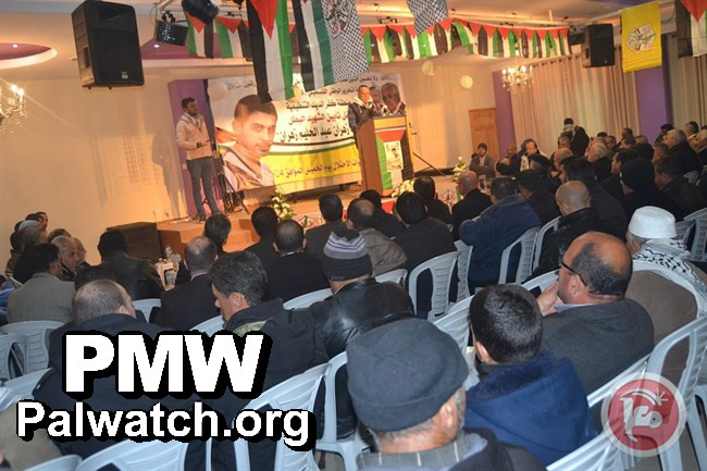 “The Palestinian National Liberation Movement Fatah’s Salfit branch, Al-Dik regional sub-branch, held a memorial ceremony yesterday (Monday) [Feb. 9, 2016]… in the village of Al-Dik to mark 40 days to the death of Martyr (Shahid) Muhammad Zahran, who died as a Martyr on Dec. 24, 2015, from the Israeli occupation’s gunfire. At the beginning of the ceremony, Secretary of Fatah’s regional sub-branch of Al-Dik, Amjad Al-Dik, blessed the attendees. He emphasized that the Fatah movement will always be the most faithful [one] to the sacrifices of our Martyrs, who are more honorable than all of us, the homeland’s pillars and candles that will light the path to victory for us. He stated: ‘If the occupation demolishes homes, we will [re]build them. We remain here, standing firm like the olive tree. We will not leave. If you uproot our tree, we will [re]plant it and water it with our blood, for this is the way of struggle and free men.’ Secretary of Fatah's Salfit branch Abd Al-Sattar Awwad said that the heroes of Palestine, its young, and its daughters compete against each other for Shahada (Martyrdom) for justice and for Jerusalem and the Al-Aqsa Mosque. He emphasized that this heroic act (probably reference to the terror attack Zahran carried out. –Ed.) is a message to the occupation and an unambiguous option: The occupation must leave this land and give the Palestinian people the right to live and build its state and its future… Salfit district Governor Ibrahim Al-Balawi and heads of the security establishment took part in the ceremony.”