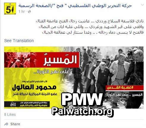 Fatah Facebook: “Stand on the Martyr’s (Shahid) grave and let out cries of joy”