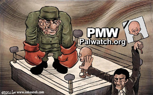 The cartoon shows a Palestinian politician in a suit and tie pushing a small child into a boxing ring, where a sturdy, threatening Israeli soldier with boxing gloves is waiting. The politician is also holding a sign with the picture of a dead child Martyr (Shahid), implying that this child was killed in the boxing ring. The cartoon expresses criticism over the use of children as part of the current wave of Palestinian terror attacks against Israel.