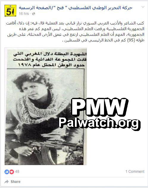 Fatah Facebook commemorates terrorist who led terror attack that killed 37: "Heroic Martyr Dalal Mughrabi"
