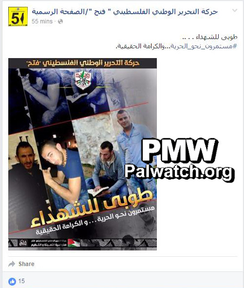 Fatah honored three terrorists who were killed on March 8, 2016 while carrying out three separate attacks (see below), posting their pictures with the following text: