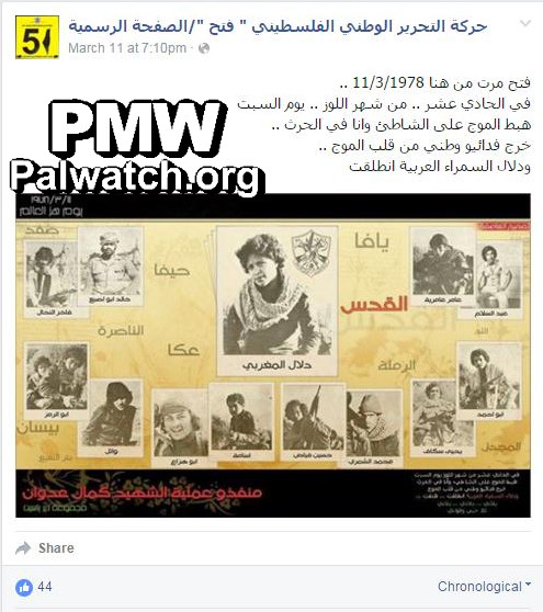 Fatah Facebook commemorates and romanticizes Dalal Mughrabi and other terrorists who carried out attack killing 37
