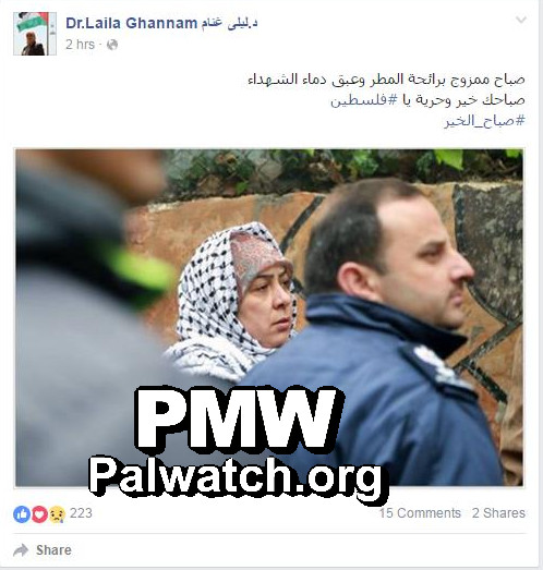 Palestinian Authority Governor of Ramallah Facebook: “A morning mixed with the scent of rain and fragrance of the Martyrs' (Shahids') blood”