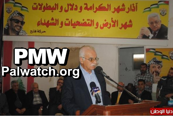 “The PLO and Fatah’s Sidon (i.e., city in Lebanon) branch held a political rally on the 48th anniversary of the heroic Al-Karameh battle and on the 38th anniversary of the Martyr (Shahid) Kamal Adwan operation (i.e., terror attack, 37 murdered), and the death as a Martyr of the self-sacrificing fighter (Fida'iya) Dalal Mughrabi and her companions on the land of Palestine…