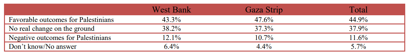 Note: “[On] March 18-22, AWRAD conducted a survey of 1,200 Palestinian youth (18-52 years old) in the West Bank and Gaza.”